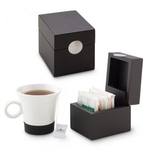 Landik trae esta linda cajita en madera color negro para guardar las bolsitas de té de tu preferencia. Está elaborado en MDF con pintura catalizada color negro y tiene medalla en acero inoxidable. El producto inluye separación en madera para que puedas separar las bolsitas de té de bolsitas de otros productos como sobresitos de…