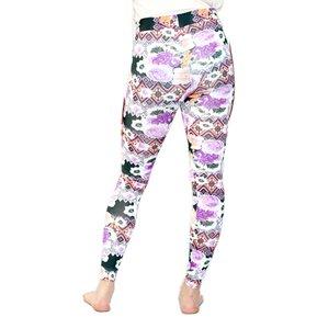 - Leggins beige estampado etnico verde y café.