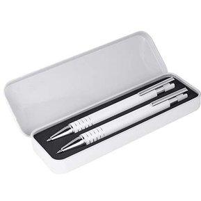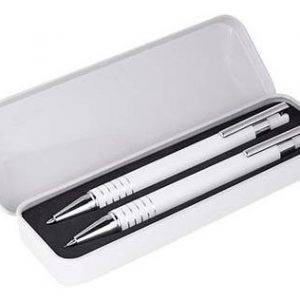 $16.500SET COBALT COLOR BLANCO Descripción: SET COBALT (Bolígrafo y lapicera 0.5 mm. Mecanismo pulsador. Incluye estuche metálico.) INFORMACIÓN BASICA CATEGORÍA: BOLIGRAFOS FUNCIONES MATERIAL: Aluminio TAMAÑO: 1 x 13.5 cm Bol¿grafo / 5.2 x 15.5 cm Estuche COLORES: A/B/R CAPACIDAD: COLOR DE TINTA: Negra