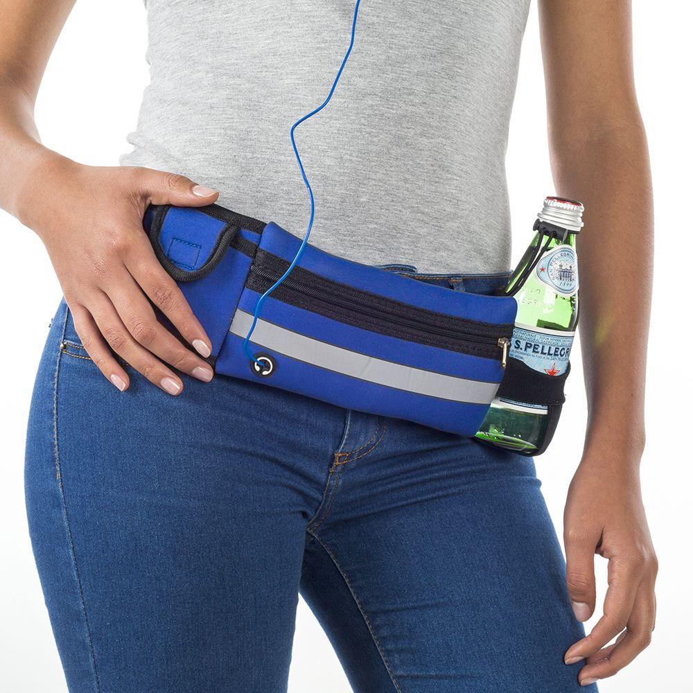 Este canguro es perfecto para hacer deporte ya que tiene correas elásticas ajustables, broche de fácil apunte/desapunte y tiene orificio para salida de audífonos.