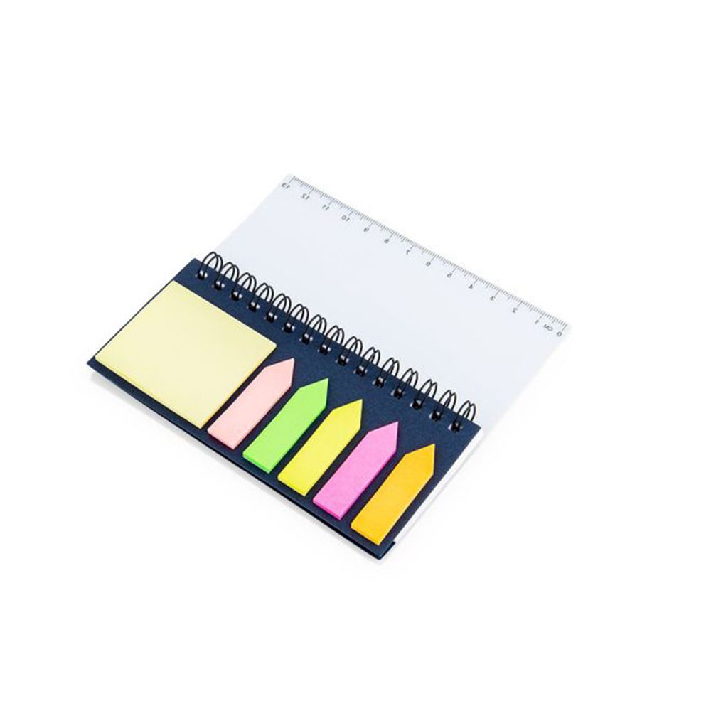Landik trae para ti, esta linda libreta con argollado doble O. que incluye impresión de regla en la Portada, memos adhesivos por 40 hojas y 5 colores de banderas en papel x 25 unidades cada color. Es ideal para tus notas importantes.