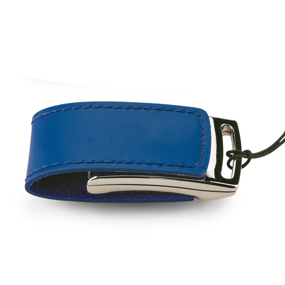 Landik, trae para ti esta linda memoria USB metálica con funda imitación cuero, cierre imantado y cordón para colgar en el cuello, las medidas de la USB son: 6.3 cm x 2.6 cm