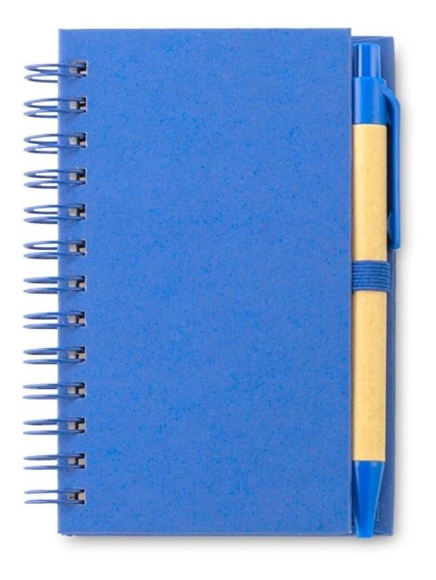 Minilibreta con bolígrafo en cartón. 70 hojas.