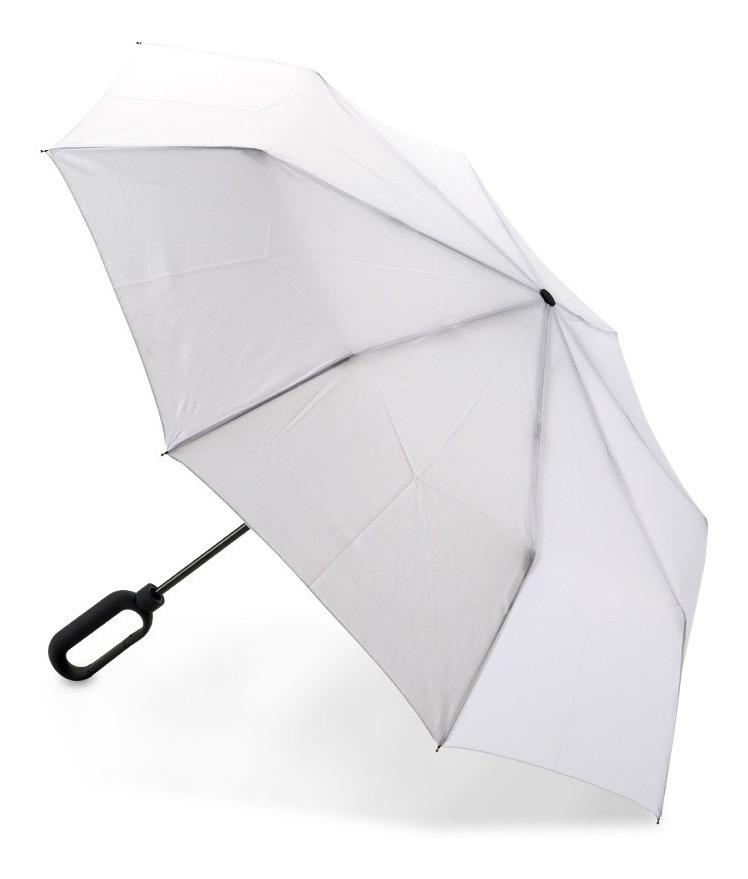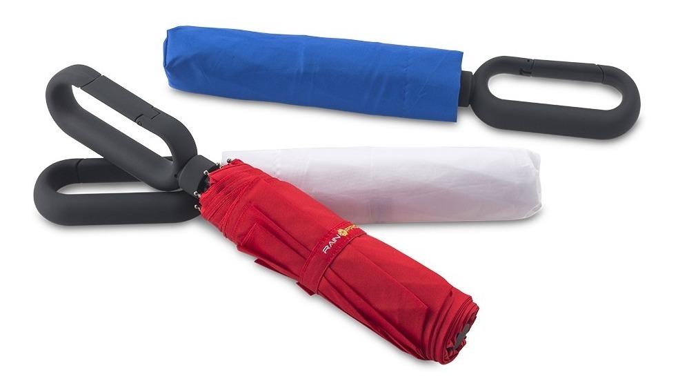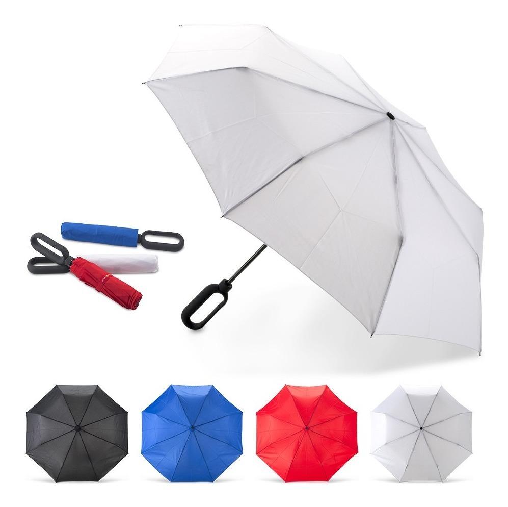 Poliéster pongee 190T. Manual, herraje en metal y fibra de vidrio. Mango plástico acabado caucho. Incluye funda. Apertura manual y sistema antibrisa.