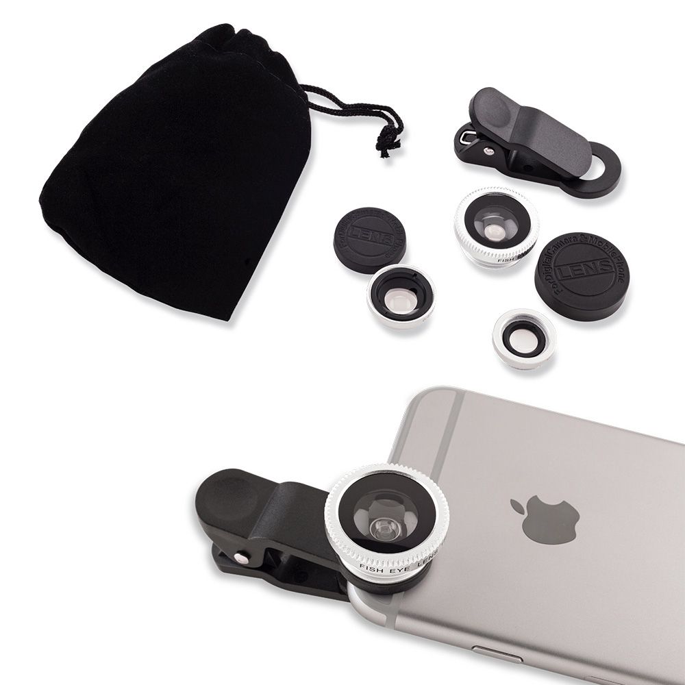 Landik trae para ti este espectacular set de 3 lentes de vidrio intercambiables para móviles con funda: Lente ojo de pez, gran angular y macro. Compatible con tablets, iPhone y Samsung. Empaque Caja Individual.
