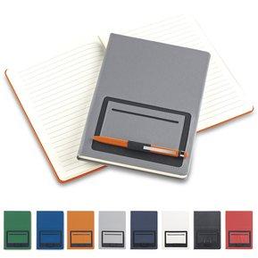 Libreta en poliuretano con 80 hojas. Con bolsillo portatarjetas y portacelular.