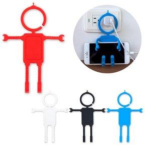 Soporte flexible en silicona para móviles, la cabeza se cuelga en el toma corriente, para móviles de tamaño 15 cm x 7.5 cm máximo.