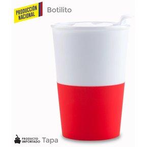 Con silicona. Tapa y silicona importada, mug producción nacional. La tapa es una tapa protectora de cierre a presión, no es tapa de seguridad.